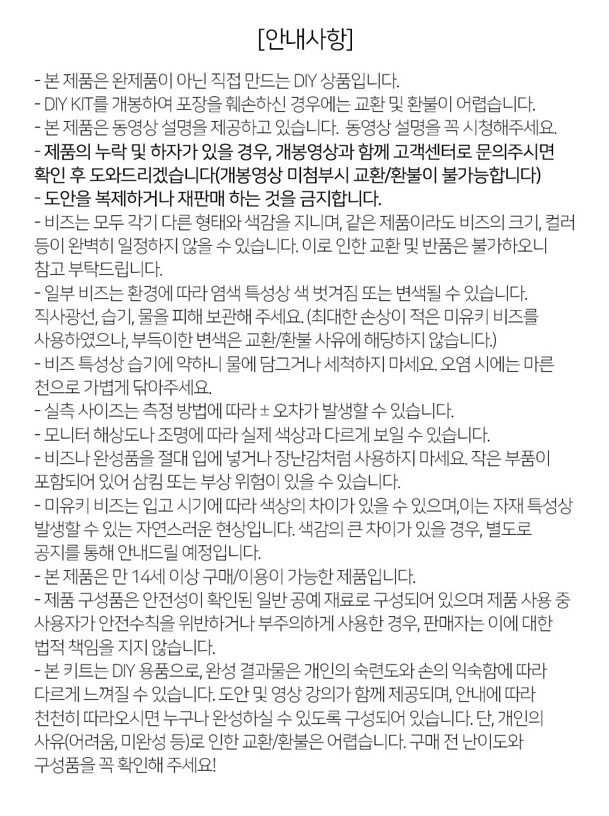 * 유의사항 및 준비물을 확인 후 구매 부탁드립니다.