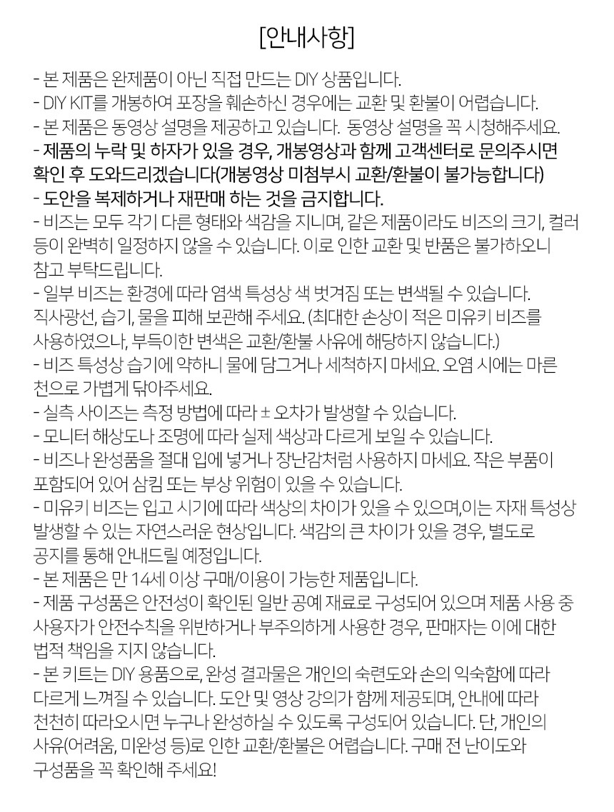 * 유의사항 및 준비물을 확인 후 구매 부탁드립니다.