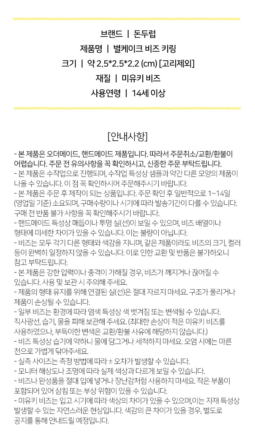 - 본 제품은 100% 수작업으로 제작되는 핸드메이드 제품입니다.