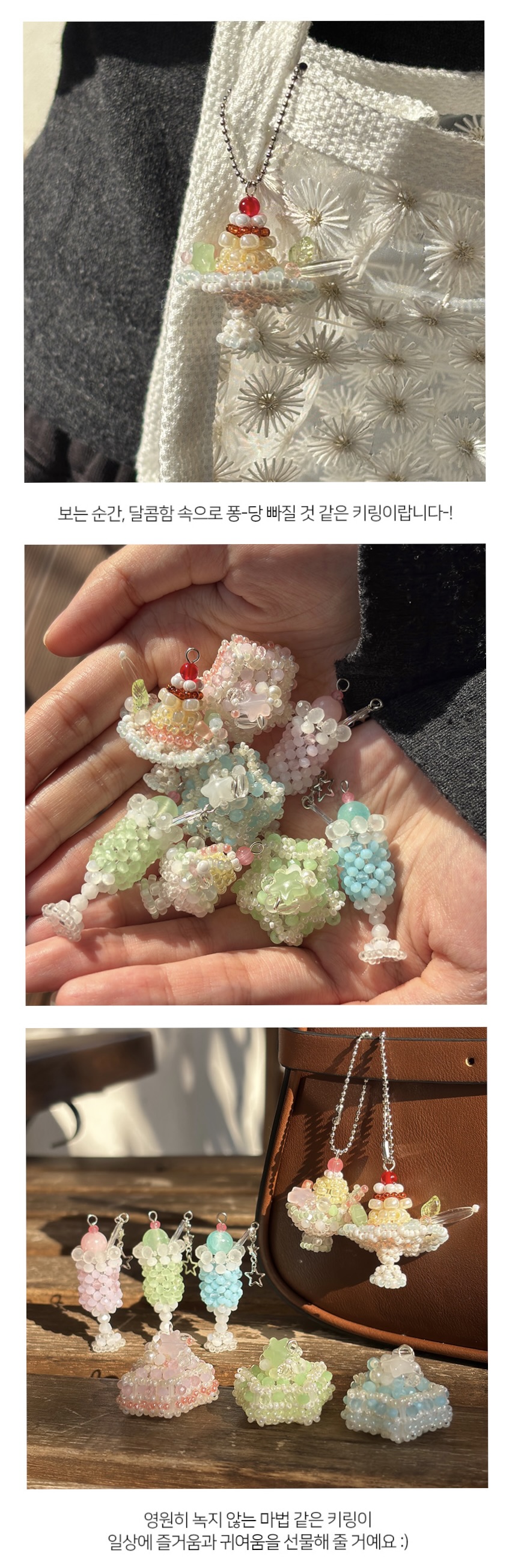 귀여운 푸딩에 체리와 별 포인트, 다양한 토핑이 더해져 달콤하고 키치한 무드를 연출해줘요. 보는 순간 달콤함에 퐁–당 빠져들 것 같은, 뽀용하고 사랑스러운 무드가 매력적인 아이템이에요. 가방이나 파우치에 달면 소소하게 포인트가 되어, 데일리 키링으로 즐기기 좋아요.