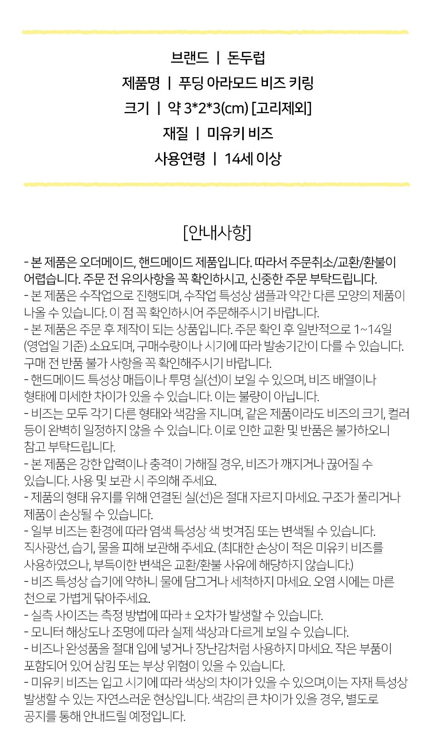 - 본 제품은 100% 수작업으로 제작되는 핸드메이드 제품입니다.