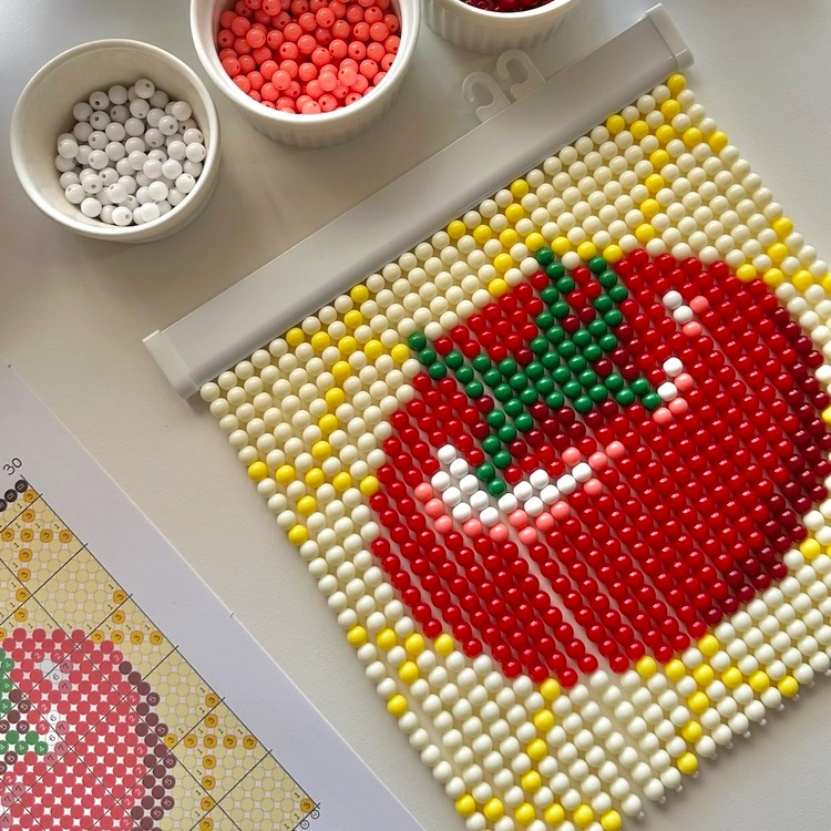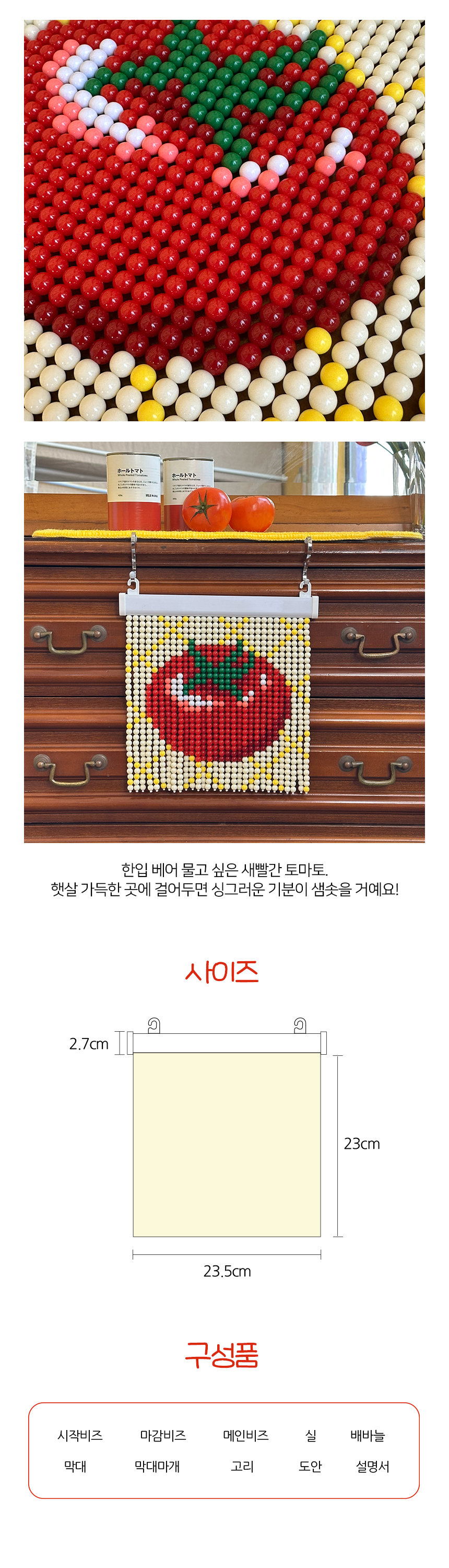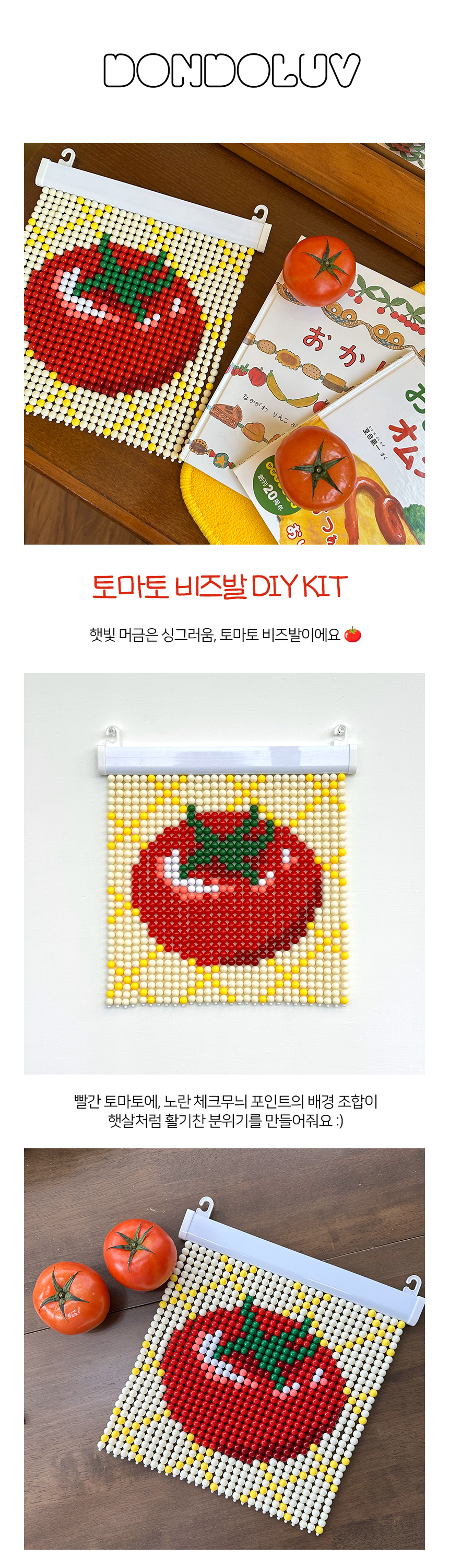 햇살 머금은 싱그러움, 토마토 비즈발 🍅노란 체크 배경에 한입 베어물고 싶은 선명한 빨간 토마토가 포인트!클래식하면서도 생기 있는 분위기를 더해줄 토마토 비즈발을 직접 만들어 볼 수 있는 DIY KIT입니다.