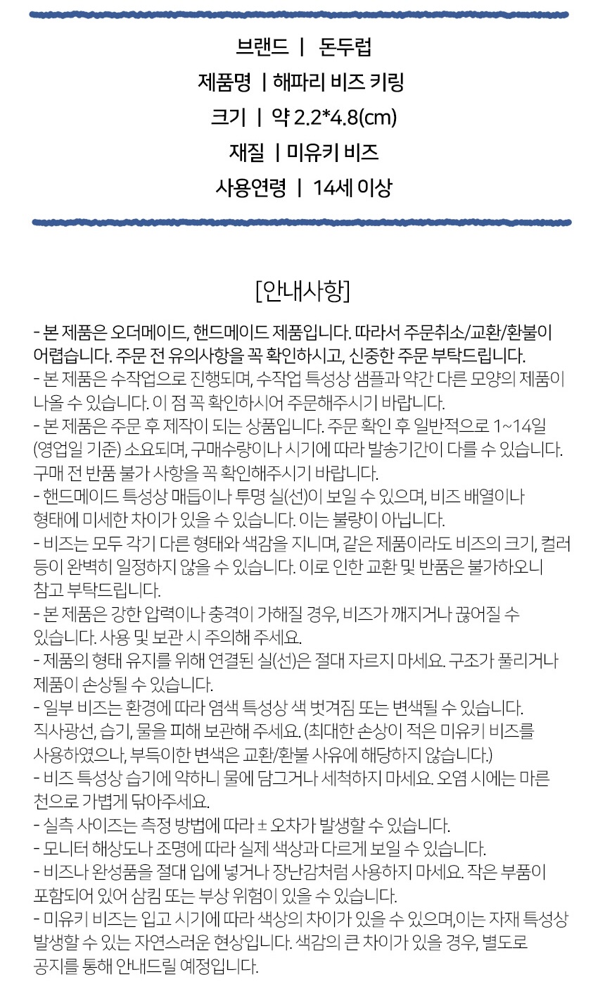 - 본 제품은 100% 수작업으로 제작되는 핸드메이드 제품입니다.