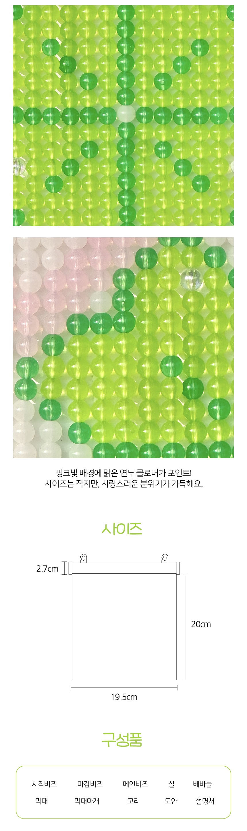 Tip) 비즈를 꿸 때마다 마음속 작은 소원을 살짝 담아보세요. 완성된 클로버 비즈발이 햇살 아래 살랑일 때, 소원이 이루어질지도 몰라요!