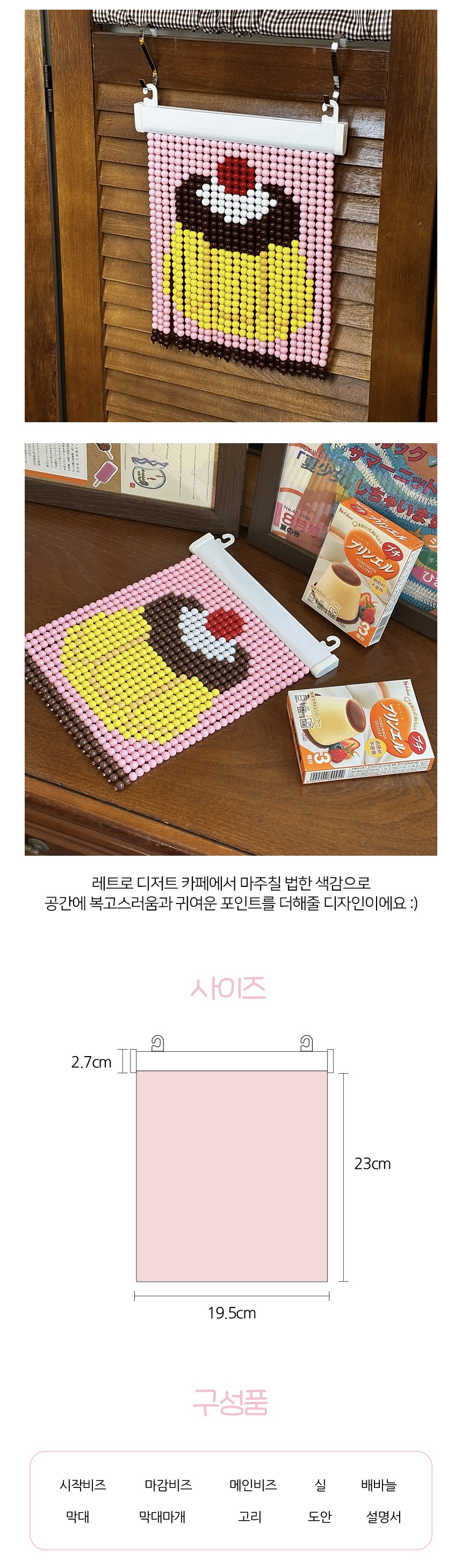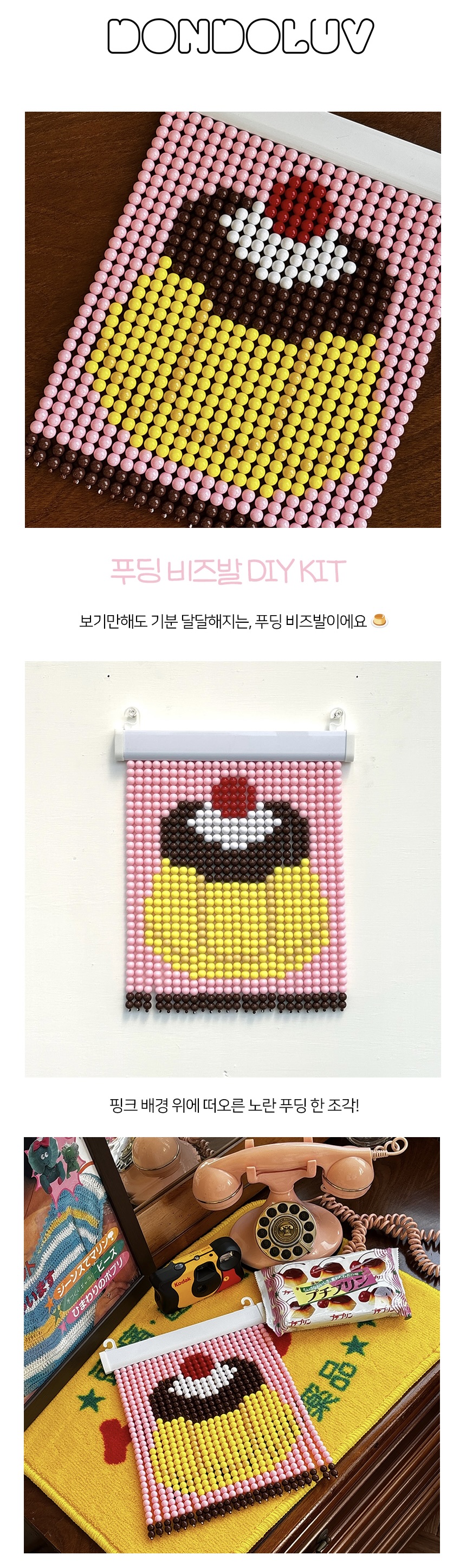 보기만 해도 기분 달달해지는, 푸딩 비즈발 🍮핑크빛 배경 위로 몽글몽글 떠오른 노란 푸딩 한 조각.레트로 감성 가득한 귀여움을 담아, 직접 만들어 볼 수 있는 DIY KIT입니다.